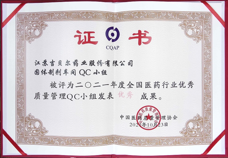 2021年10月23日,在第42次全国医药行业质量管理(QC)小组成果发表交流会上传来喜讯,创世大发药业股份有限公司荣获“二〇二一年度全国医药行业优秀质量管理QC小组发表优秀成果”。
